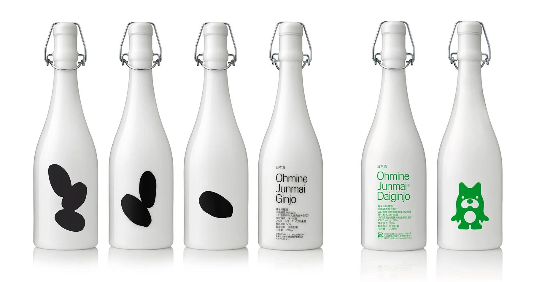 Ohmine Sake – traditsioonilise sake uudne pakend. Jaapani supermarketite sakeosakonnad on täis kauni kalligraafilise sildiga pudeleid, mille hulgast on raske eristuda kui jääda traditsiooniliseks. Disainides ilmselget – sake on riis; täpsemalt lähtub kujundus sake tootmisprotsessist, mille käigus riisiteri „poleeritakse“, et eemaldada nende välimine kiht. Mida enam kihte riisiteral kooritakse, seda kvaliteetsem on jook ja vähem riisi on vaja selle tootmiseks. Mustad riisiterad on trükitud otse valgele läbipaistmatule klaaspudelile ning riisiterade arv pudelil näitab sake kvaliteeti. Hiljem lisandusid mustvalgetele pudelitele ka ühevärvilised disainid.