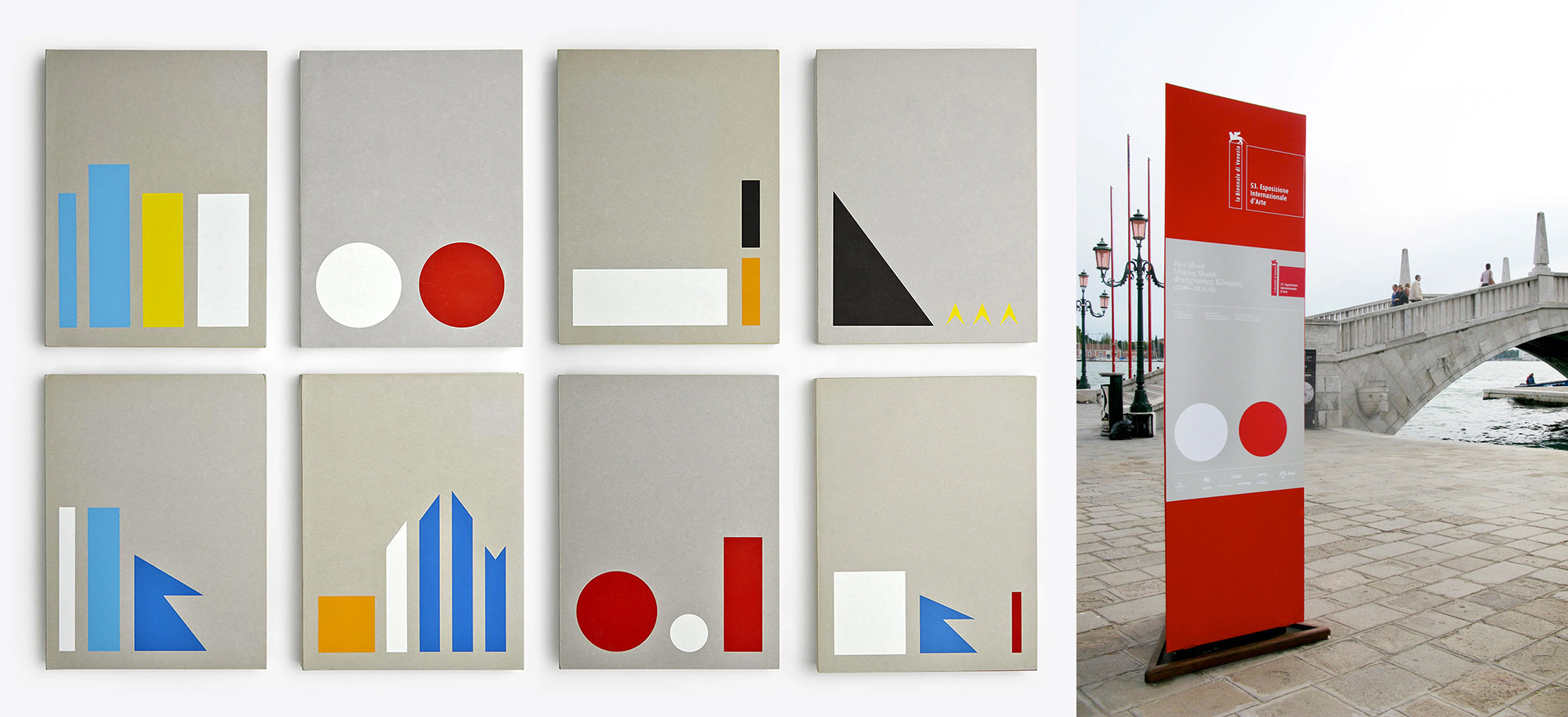53. Veneetsia Biennaali identiteet. Agentuuri hinnangul on Veneetsia biennaal justkui kaasaegse kunsti olümpiamängud, kus riigid ja kunstnikud üksteisega võistlevad. Kõigi biennaalil osalevate riikide lippude dekonstrueerimine, jagamine elementideks andis hulga abstraktseid vorme, mida pandi kokku üllatavates kombinatsioonides ja kasutati linnakujunduses, plakatitel ja kataloogide kaantel.