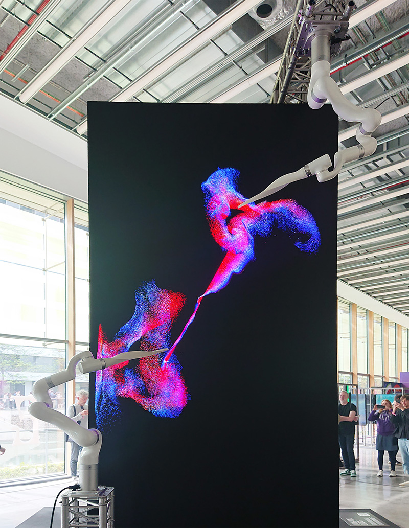 OFFFil eksponeeritud Volvox Labsi „Astral Twin“ on audiovisuaalne installatsioon või pigem koreograafia, kus Led-ekraanil toimuv ja robotkäe liikumine mõjutavad vastastikku teineteist.